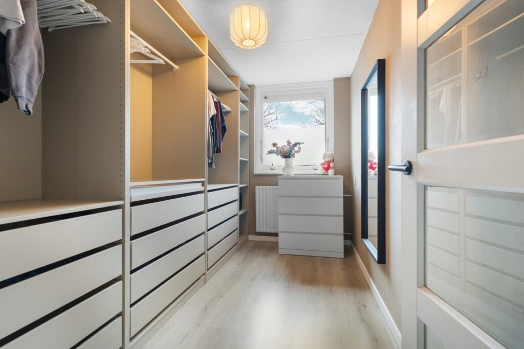 Via een vaste trap bereik je de tweede verdieping. Op de voorzolder bevindt zich de aansluiting voor de wasmachine. Vanuit hier heb je toegang tot de ruime zolderkamer met dakraam, die uitstekend gebruikt kan worden als vierde slaapkamer, werkkamer of hobbyruimte. Daarnaast is er extra bergruimte aanwezig onder het schuine dak, ideaal voor de opbergspullen. Dankzij het dakraam valt er prettig licht de ruimte binnen.