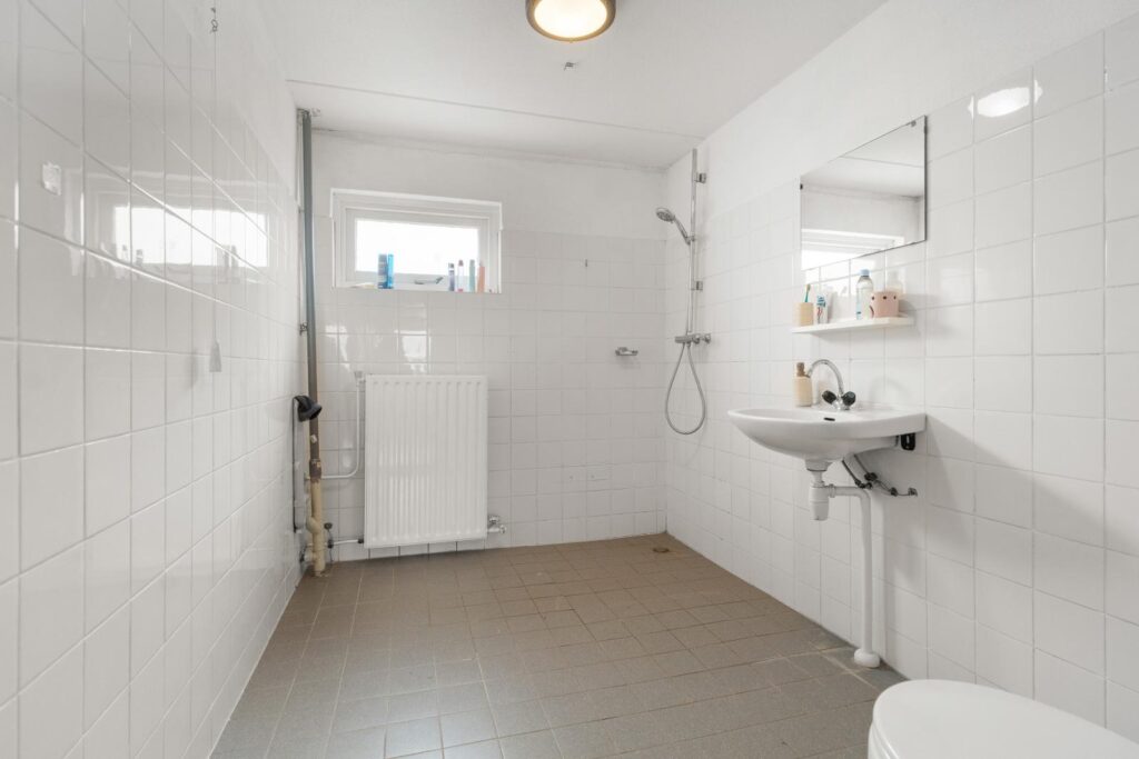 Via de trapopgang bereik je de eerste verdieping. Hier vind je maar liefst drie ruime slaapkamers, waardoor de woning perfect is voor gezinnen, thuiswerkers of iedereen die extra ruimte kan gebruiken. De kamers zijn stuk voor stuk licht en praktisch in te delen. De badkamer is eveneens op deze verdieping te vinden. De badkamer is praktisch ingedeeld en voorzien van een douche, wastafel en toilet.