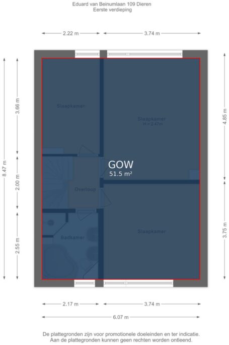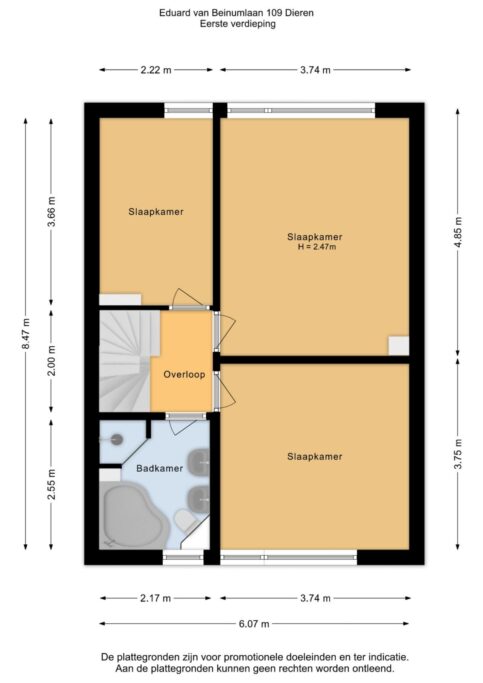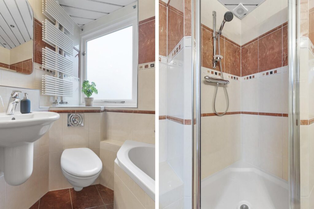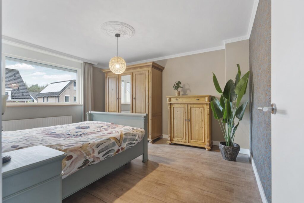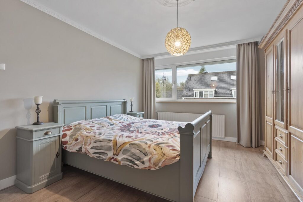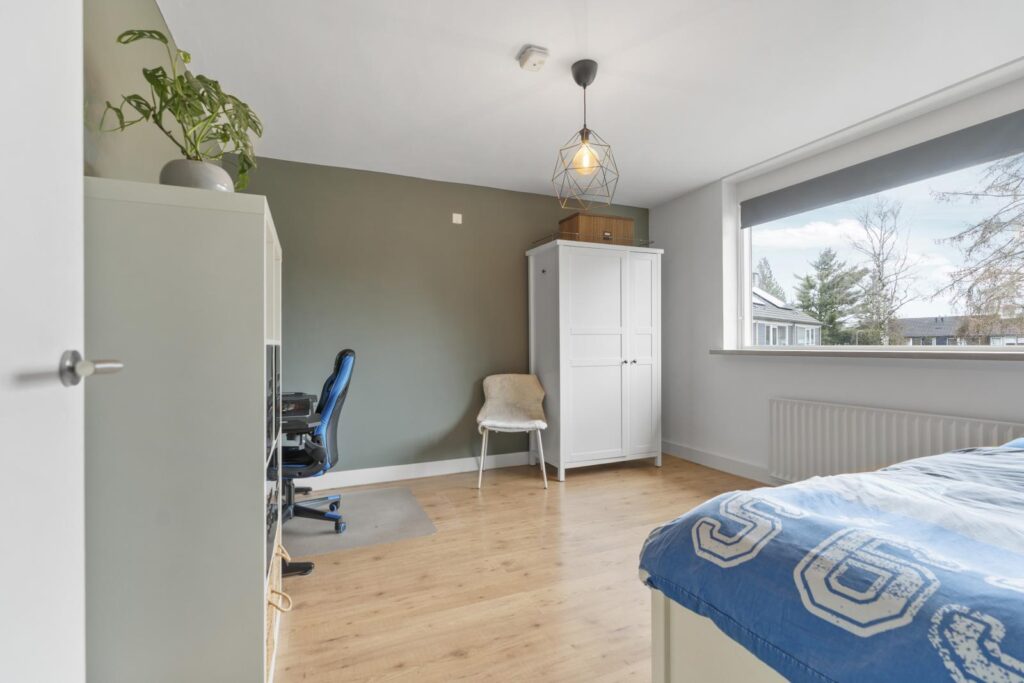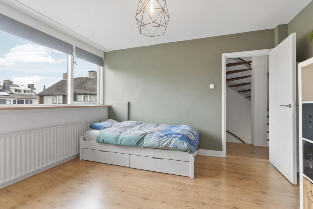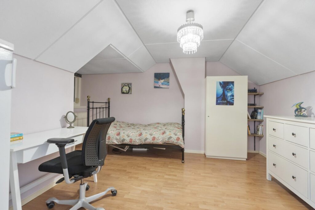 Via de trapopgang bereik je de eerste verdieping. Hier bevinden zich drie ruime slaapkamers en een nette badkamer. De kamers zijn licht en praktisch in te delen, ideaal voor een gezin, thuiswerkplek of hobbyruimte.