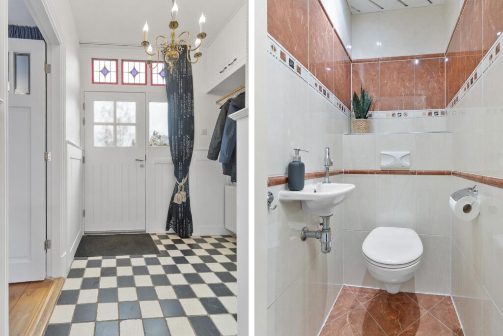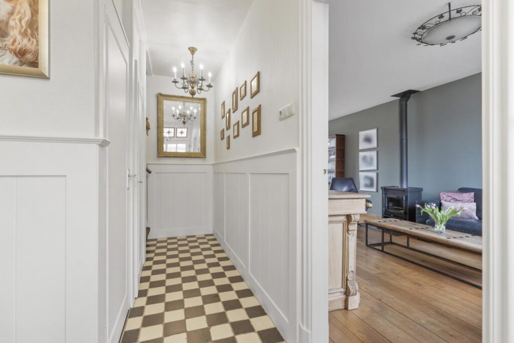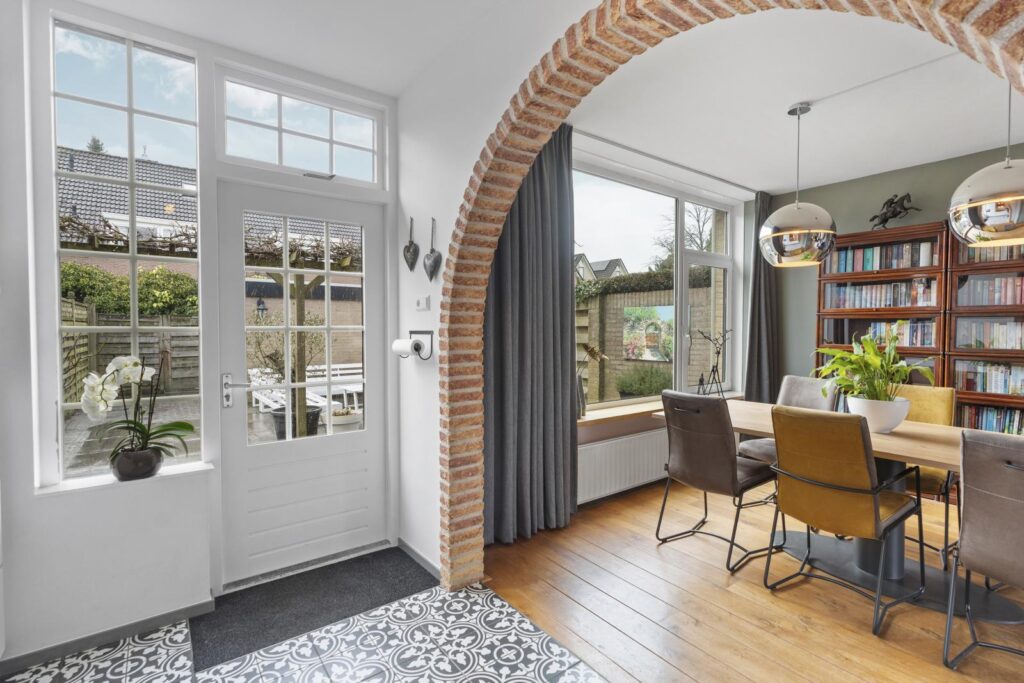 De woning verwelkomt je via een charmante entree. Vanaf het moment dat je binnenstapt, voel je meteen de warme en uitnodigende sfeer van deze woning. De lichte entree met karaktervolle tegelvloer en stijlvolle details geeft direct een verzorgde eerste indruk.