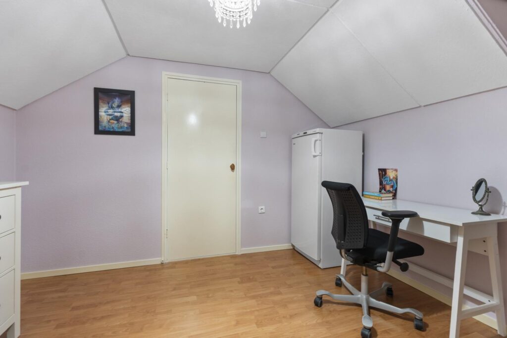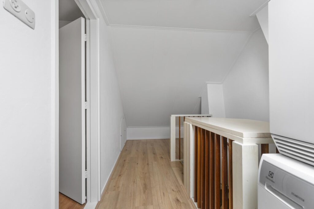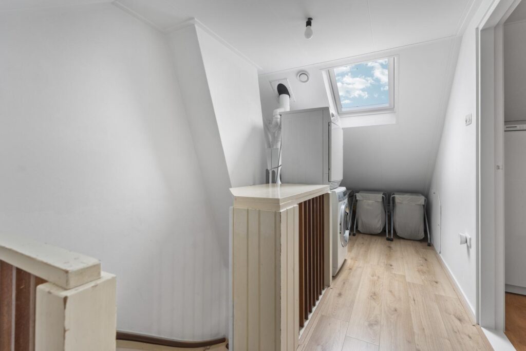 Via de vaste trap bereik je de tweede verdieping, waar je wordt verrast door een extra slaapkamer en een praktische ruime overloop met ruimte voor opbergspullen, de wasmachine en installaties. Deze verdieping biedt volop mogelijkheden en is een perfecte plek voor bijvoorbeeld een tienerkamer, werkruimte of logeerkamer.